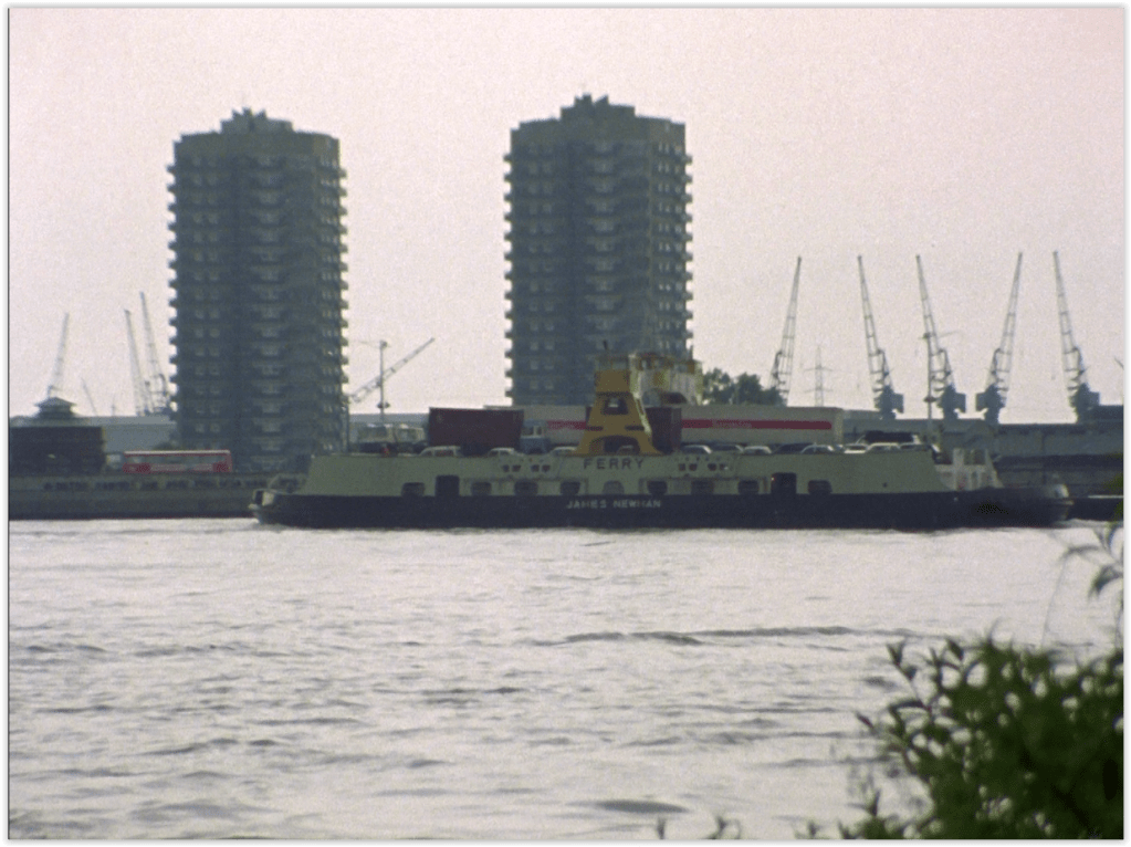 Bodie and Doyle’s meeting with shady gun dealer Martell takes place for no apparent reason on the deck of the Woolwich Ferry, which still runs today. Presumably used to give more of that urban flavour ITV had demanded from the show’s second series, it gives some interesting looks at East London from the river as it was in 1978.