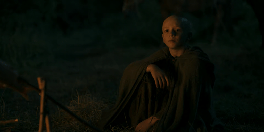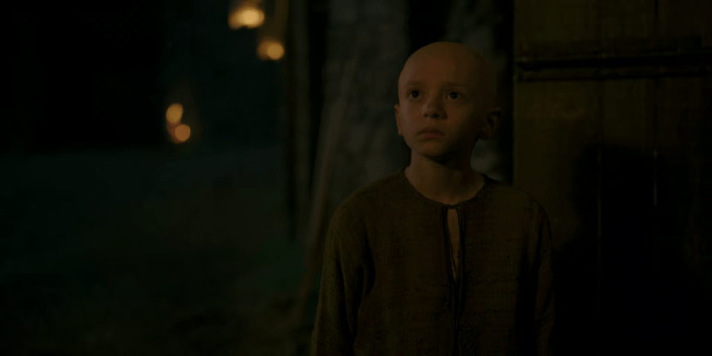 His counterpart, the conspicuously bald Egg, is played by 11 year old British actor Dexter Sol Ansell, in a solemn, deadpan performance. Following Martin’s tradition of writing child characters who are preternaturally wise beyond their years – think Arya and Bran Stark – Egg has a pithy, sarcastic comeback for every one of Dunk’s naïve pronouncements, his acid wit disguised by his innocent appearance and boyish voice. It’s another great performance from a very young actor in a Thrones show.