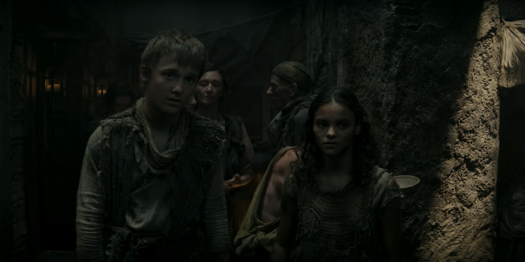 I also wasn’t prepared for being catapulted almost immediately into a lengthy flashback to Dunk’s less than happy childhood in the squalid Flea Bottom district of King’s Landing. This is entirely new material that isn’t taken from the books – well, they’re very short, and even with the show’s short episodes and short seasons, some expansion is needed.