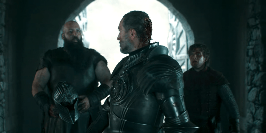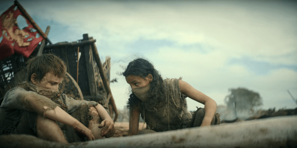 We first meet the young Dunk (Bamber Todd, effectively sounding like a young Peter Claffey) and his childhood sweetheart Rafe (Chloe Lea) looting the aftermath of one of the parent show’s trademark battles, and failing to sell some of their ill-gotten gains because it’s from the other side in a recent civil war – the Blackfyre rebellion. Again, I wouldn’t want this show to get so mired in the dynastic politics that often makes House of the Dragon so hard to follow, and this isn’t all that necessary to know here. But it does become a very important plot driver in the later books, so it’s good to see it being seeded here.