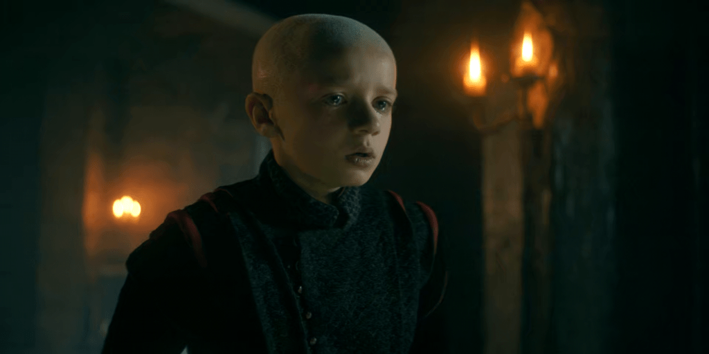 Well, gods are notoriously capricious, as has been noted before regarding the coin toss difference between making Targaryens good men or insane monsters. That too is reflected on with Maekar banishing the recalcitrant Aerion to the Free Cities – even he realises his vain, arrogant son is a monster. Which leaves him with drunken sot Daeron and, of course, young Egg. When we see Egg approaching the stricken Aerion’s bed, dagger in hand, the question arises again – will this likeable kid follow his brother’s path to murderous, sadistic evil?