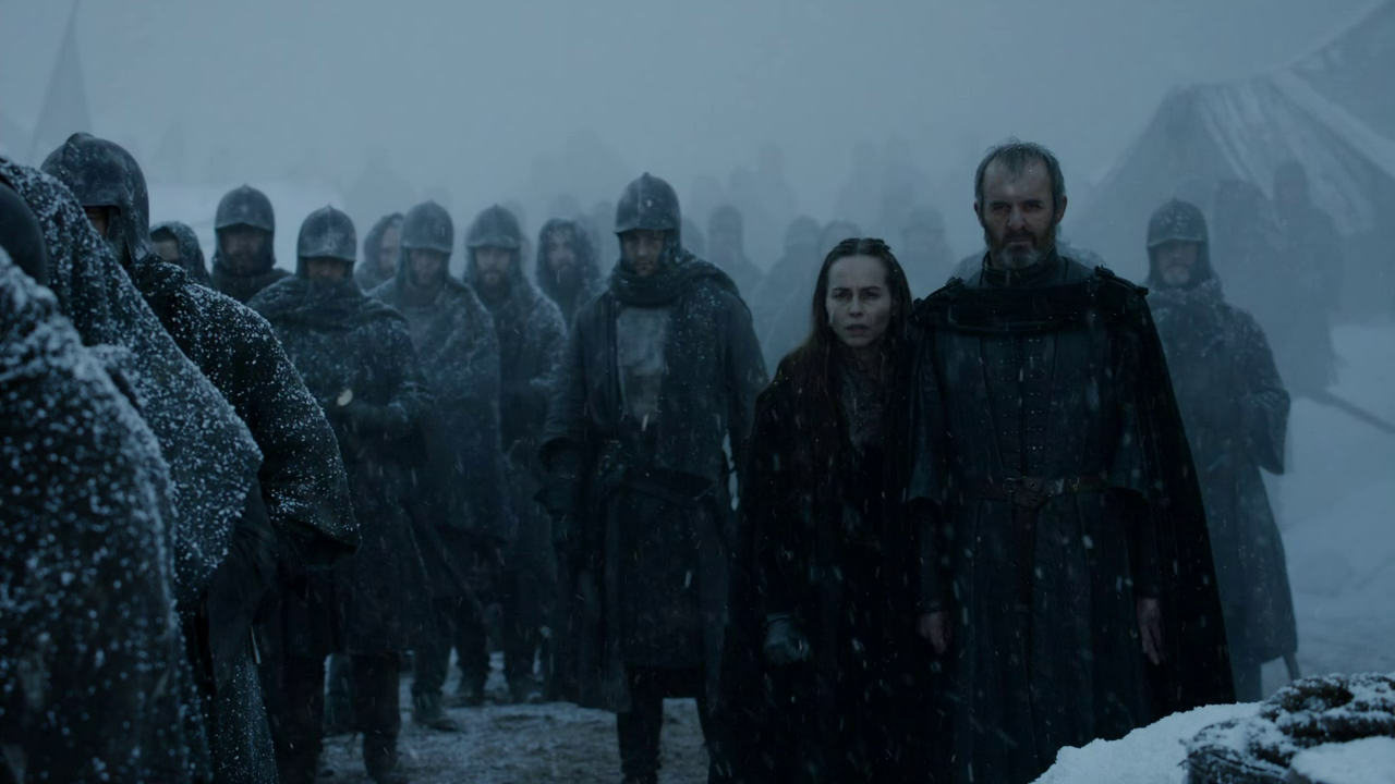 Loras and his sister Margery were spirited away before Stannis arrived to take charge, presumably by Littlefinger, who popped up to work his schemes on them. It’s clear that Margery is the one with ambition in that family; Natalie Dormer did well as she steelily declared, “I don’t want to be a queen. I want to be the Queen.” I wonder where that will take her?